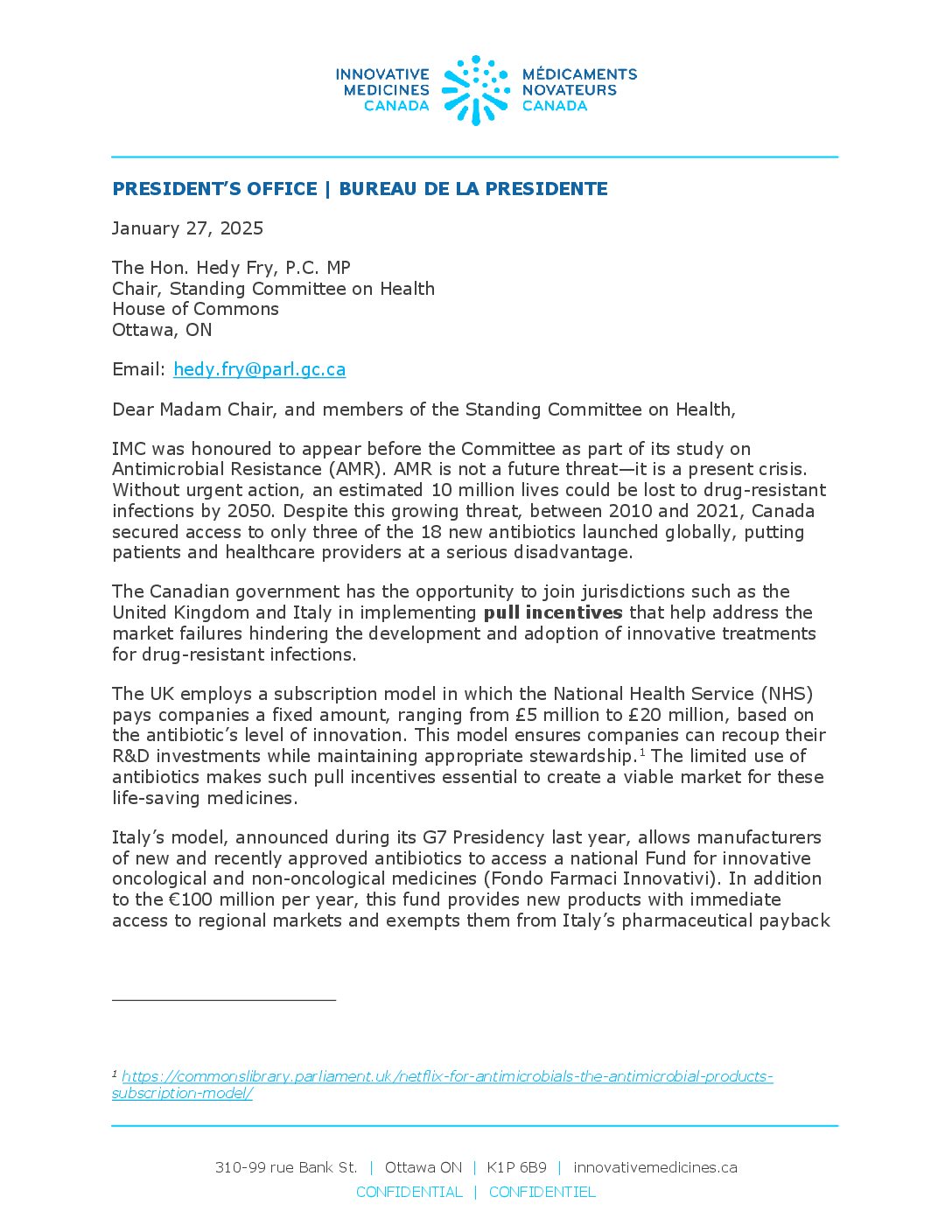 Letter to the Standing Committee on Health Policy Positions • February 2, 2025 Share View Topic Antimicrobial Resistance (AMR)