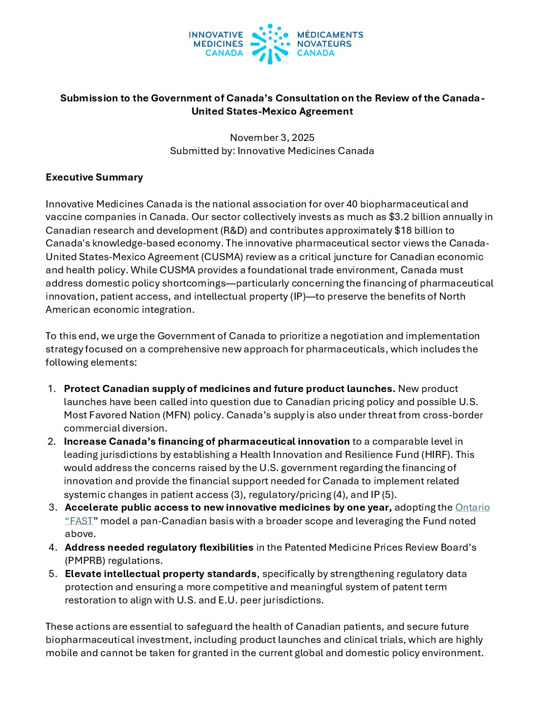 Submission to the Government of Canada’s Consultation on the Review of the Canada – United States -Mexico Agreement